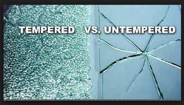 Tempered glass, like tempered steel, undergoes a well-controlled heating process which increases strength. Thus, when tempered glass is under stress, it will not easily break into jagged shards that can injure.