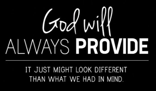 God will supply our every need according to His plan for us. There are more than 160 references in the Bible that points to how God provides for us. Reflecting on these promises are key to helping us, especially during seasons of lack. As Philippians 4:19 puts it, “God will meet all our needs in line with the riches of His glory in Christ Jesus.” Sometimes, these things will happen outside of our normal routine when we least expect them, and it will shake things up. Whether we view those things as positives or negatives, these things happen for our betterment, even when we don’t know or understand His plan. God doesn’t want anxiety for us, He doesn’t want suffering for us, He doesn’t want worrying for us, and He doesn’t want harm for us. God in Christ desires for all of us to take possession of our new life in Christ. So today remember, God will always provide for His children although it might look a little different than what we had in mind!