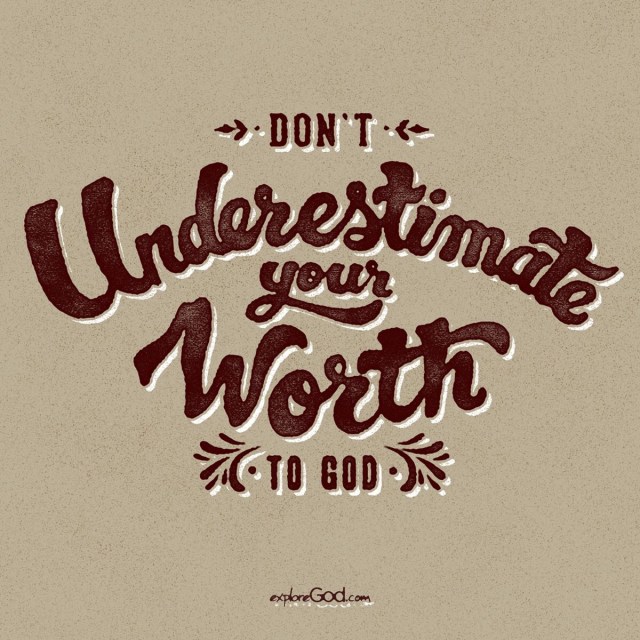 You are worth more to God than you’ll ever know. Psalm 139:17-18 says, “How precious are your thoughts about me, O God. They cannot be numbered! I can’t even count them; they outnumber the grains of sand! And when I wake up, you are still with me!” The true appraised value of our net worth is not defined by our bank accounts, job title, or our status on social media. Our net worth can only be defined by the light reflected from the cross on Calvary’s Hill! Isn’t it amazing that God clearly demonstrates our value throughout the Bible. Just imagine anything on this earth that we value, and it’s incomparable to how God feels about us. So lets remember how much we are of value in God’s eyes! And remember to be kind and loving to all the people in this world because of what Jesus has done for us, and the great worth He has place on us all. Isaiah 43:4a says, “… you are precious in my eyes … and I love you.”