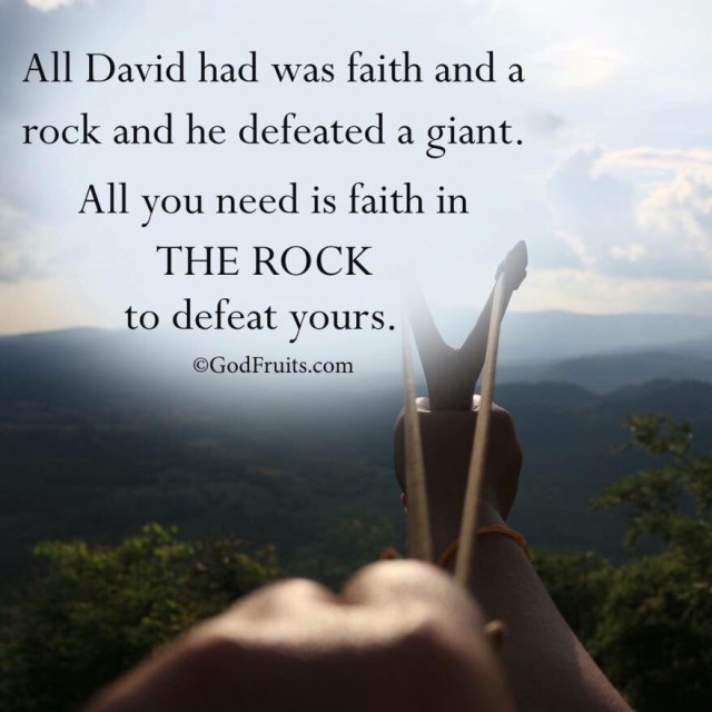 All David had was his faith in God and a rock to defeat a giant. Therefore, all you need is faith in ‘THE ROCK’ (not Dwayne Johnson) to defeat yours! If you are facing what appears to be an unbeatable obstacle(s) in your life, you must remember that you serve and unbeatable, undeniable, undefeated God!! I John 4:4 reminds us that we belong to God and we have already won victory over our people [our giants] ((HALLELUJAH))because the Spirit who lives in us is greater than the spirit who lives in the world. THANK YOU JESUS!!!