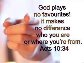 Romans 10:12 confirms, “For there is no distinction between Jew and Greek; for the same Lord is Lord of all, abounding in riches for all who call on Him…” In other words, we serve an impartial God. Therefore, Jesus’ message of grace, hope, and salvation is for everyone; His promises are for everyone; His kingdom is for everyone who believes. Titus 2:11 reminds us, “The grace of God has been revealed, bringing salvation to all people.” God doesn’t play favorites; it doesn’t matter your ethnicity nor background (Acts 10:34) God loves you, Jesus wants to save you, and the Holy Spirit wants to work in and through you!