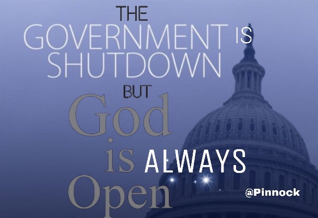 The government may be closed but God, the Ruler of all and every government known and unknown, seen and unseen is always open! So, stay focus and continue to pray for our leaders in Washington, in every State, and in every City!