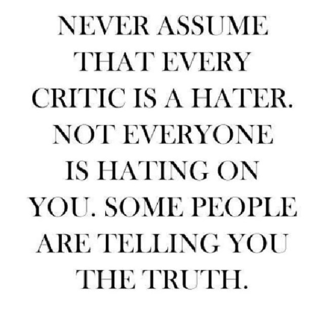 Constructive criticism is not really for the faint at heart. Some people often become offended, angry, and resentful the moment someone disagrees with their action(s) or ill disposition. Well, I got good news for you, constructive criticism is the process of offering valid and well-reasoned opinions about the work of others. A true friend will speak the truth even when it’s hard to hear: “Faithful are the wounds of a friend, but deceitful are the kisses of an enemy” (Proverbs 27:6). Since God loves people and wants the best for them, He points out faults, shortcomings, and sins. Jesus was quite critical of the Pharisees’ hypocrisy, and He expressed His disapproval forcibly on several occasions (e.g., Matthew 23). However, Jesus’ criticisms were always truthful and, ultimately, loving. When criticism is grounded in love we fulfill the command written in Ephesians 4:15 (“speaking the truth in love”) should be our primary guide in criticism. Godly criticism is true and loving. It comes from a humble, caring heart that wishes the best for the other person. It is not bitter, condescending, insulting, or cold-hearted. Bottom line; never assume every critic is a hater. Not everyone is hating on you. Some people might just be telling you the truth and perhaps maybe you should open your heart to listen.