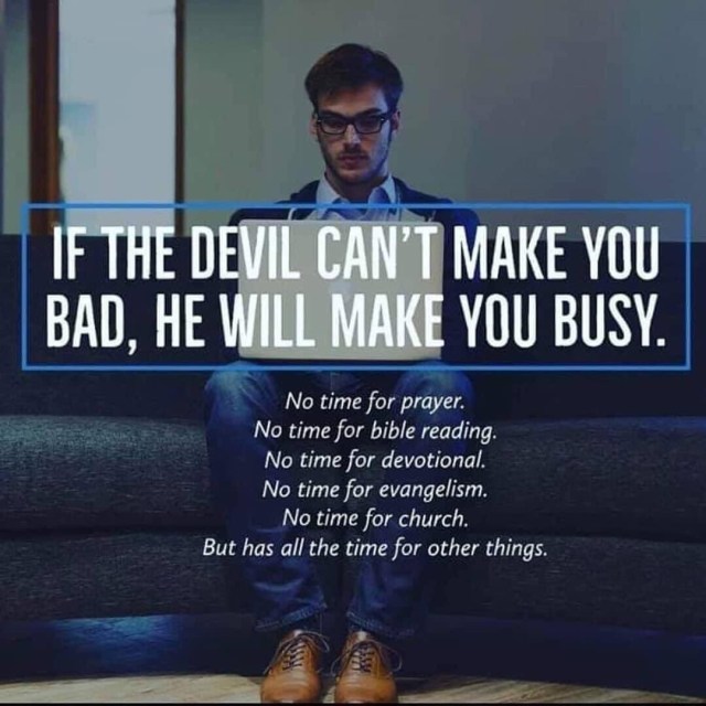 Why do we often mistake ‘busyness’ for ‘productiveness’? Pastor Adrian Rogers said, “If the devil can’t make you bad, he will make you busy.” Busyness is a tactic the enemy employs to get us off track and to steal our time. For example, you will find yourself having more time for everything except prayer, bible reading, bible meditation, devotional, evangelism, interceding, tithing, attending church, praise, and worship. John 10:10 reminds us the enemy comes to steal, kill, and destroy. And, one of our most precious non-replenishing commodities that’s incessantly fleeting and always under fire is our time. If I had a dollar for every time, I heard someone say, “I wish I had more hours in my day!” The enemy loves to distract and inundate Christians with activities that don’t contribute to our spiritual welfare. In Luke 10:38-42, we find Mary at the feet of Jesus, listening to his teaching and conversely Martha running around doing 100 & 1 things around the house. Jesus didn’t rebuke her but he explained to Martha that she was ‘doing the most’ and that perhaps she should be more like Mary and prioritize her time with him and not her chores. Martha’s busyness caused her to separate herself from the Lord, while Mary’s stillness intimately connected her to Christ. There is a reason why we all yearn for peace! Mainly because that’s where true rest, quietness, and joy resides. Don’t allow the enemy to fool you; peace can be found here on Earth, within the very spirit and breath of God that’s lives in you. The only prerequisite to experience it, is for you keep Christ at the center of your life and everything else will fall into its proper place! Question is, what’s on your itinerary today??