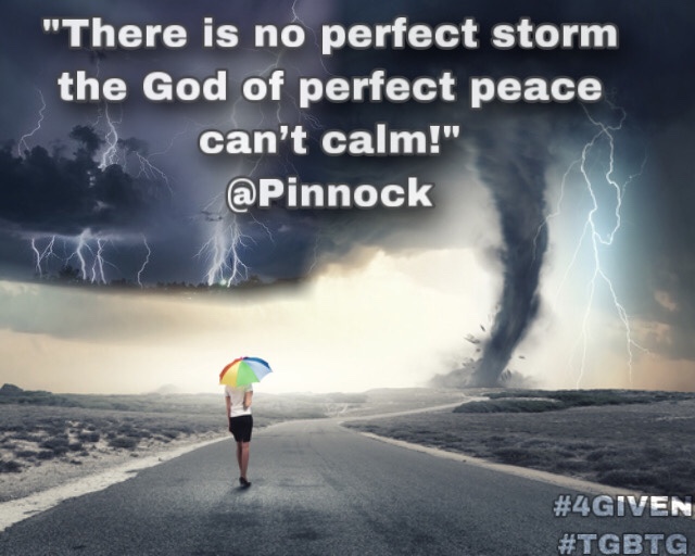 We can find perfect peace in a perfect storm! The story of the perfect storm found in the Gospel of Mark picks up right after Jesus had given a series of sermons. He preached to a crowd of people so large that he had to speak from a boat pushed a short distance into the water. Then in Mark 4:35-41, we read about a perfect storm blowing through on the same waters Jesus preached on. The wind picked up its strength and tsunami type waves began to break over into the boat so that the boat was filling with water. The disciples, some of whom were fishermen and had been on this body of water many times, were terrified. In the middle of all this, Jesus was sleeping on a cushion in the back of the boat. After all that laborious preaching some will think Jesus sleeping in the boat represented his humanity and others say, his divinity. Well, I say both! This perfect storm presented Jesus another opportunity to demonstrate to his then disciples and his today believers that he was more than a teacher; he was and still is a miracle-worker! So today remember there is no perfect storm the God of perfect peace can’t calm!! God is more powerful than even the biggest obstacle, He sees things (in us and in life’s circumstances) that we cannot, and He loves to use seemingly hopeless situations for HIS glory and our good!