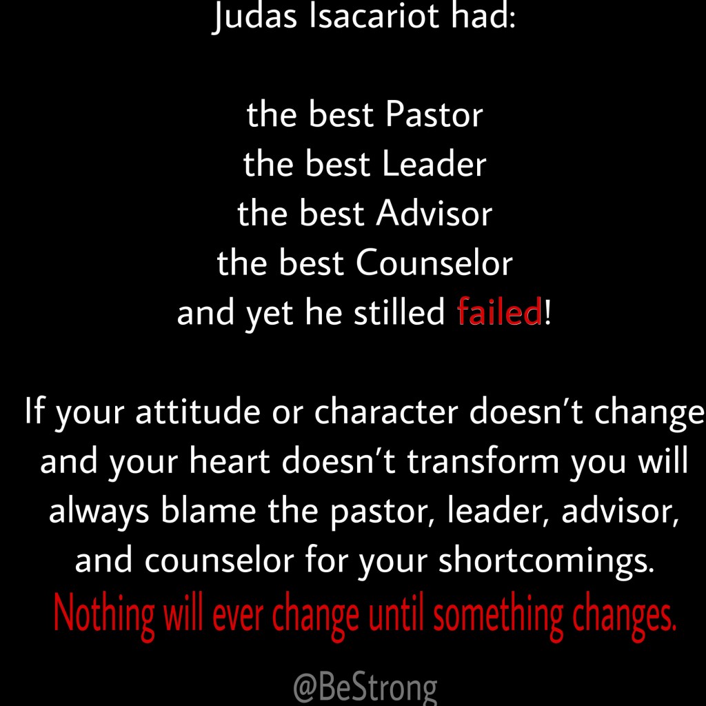 Judas Isacariot had the best Pastor, the best Leader, the best Advisor, the best Counselor and yet he stilled failed!