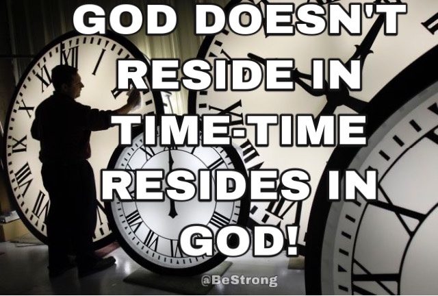 While hanging in the balance, in lieu of staying in God’s presence (prayer, praise, and worship) people way too often choose to believe that God is absent (fear, doubt, and worry). We’ve all heard it said that, “God’s timing is perfect” and for the most part people accept that, but what they really want to know is which time zone is He using (CST, EST, GMT)?! Fact is, God doesn’t reside in time, rather time resides in God!