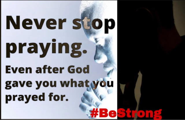 In I Thessalonians 5:17 (NLT) we are encouraged to, “Never stop praying”! The problem many of us have is that we mistakenly stop praying after God gave us what we asked for.