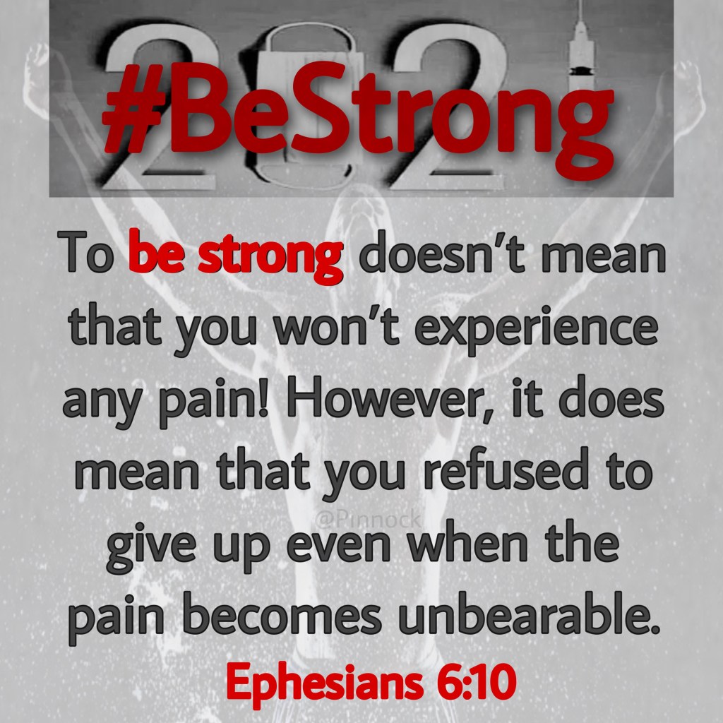 Welp, that’s enough right here to chew on for the rest of our natural lives. But, I will close this message with repeating what Paul said to the church at Ephesus in Ephesians 6:10, “Finally [my brothers and sisters], be strong in the Lord and in His mighty power.” To be strong doesn’t mean that you won’t experience any pain! However, it does mean that you refused to give up even when the pain becomes unbearable.
