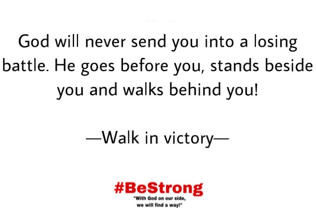At the end of the day, no matter what happens fully submit to God and never forget that God will never send you into a losing battle. He goes before you, stands beside you and walks behind you!