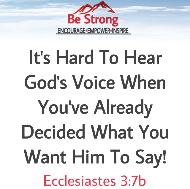 The majority of the time we spend meditating on the word of God is on Sunday, and the rest of the week, we have other things to fill our minds. Meanwhile, God is speaking and we simply cannot hear Him through all the noise. We must tend to our inner lives. If we spend the day meditating on the things of the Lord, we will be more sensitive to the voice of the Holy Spirit when He speaks to us. Ecclesiastes 3:7b reminds us there is, “…a time to be silent and a time to speak…”
