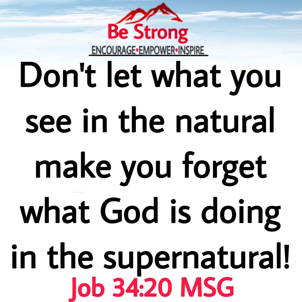 Therefore, don’t let what you see in the natural make you forget what God is doing in the supernatural! Job 34:20, of the MSG paraphrase put it this way, “… we know God is [always] working behind the scenes.”