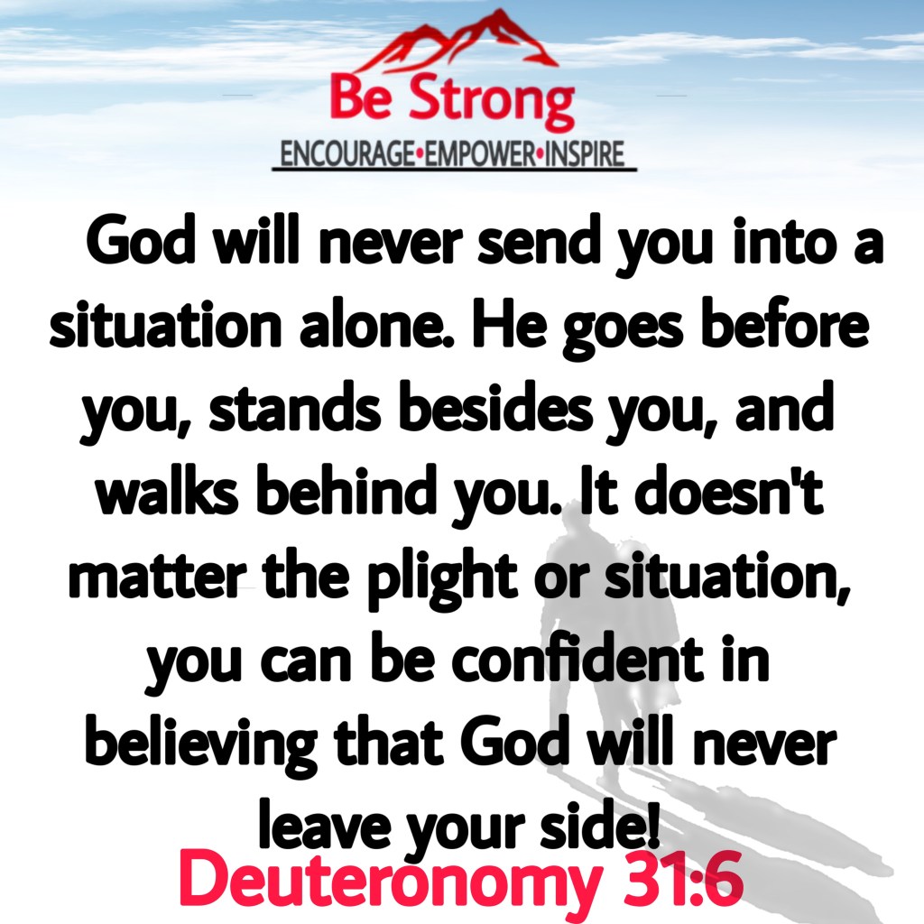 “Be strong and courageous. Do not be afraid or terrified because of them, for the LORD your God goes with you; he will never leave you nor forsake you.” Deuteronomy 31:6
