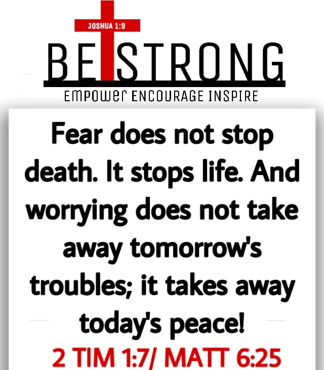 At the end of the day, Fear does not stop death. It stops life. And worrying does not take away tomorrow’s troubles; it takes away today’s peace!”