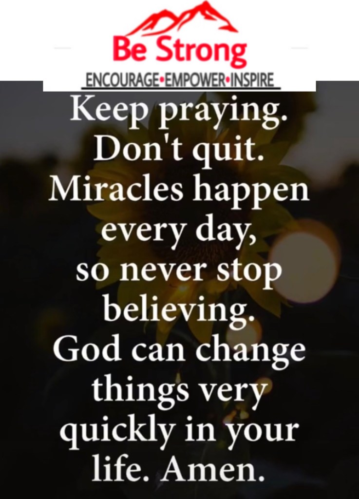 Don’t count the Miracle-Worker out! God can change your situation around in an instance and if He decides not to change it immediately, He will give you strength to endure! In either case, you win because God can change impossible situations.