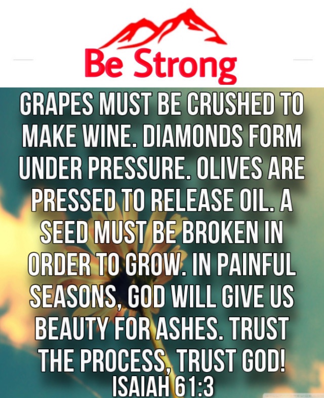 Undoubtedly, God can take what we believe to be the worst of circumstances and turn it into something great. If you don’t believe me look at the grape, diamond, olive and seed. We have hope for coming out on the other side of sorrow with shouts of praise for our Lord.