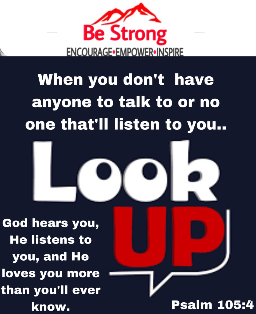 Therefore, if you don’t have anyone to talk to or listen to you, LOOK UP! God hears you, He listens to you, and He loves you more than you’ll ever know. Ephesians 3:20 says, “Now unto Him is who able to do exceedingly-abundantly above all that we ask or think, according to the power that works in us!”