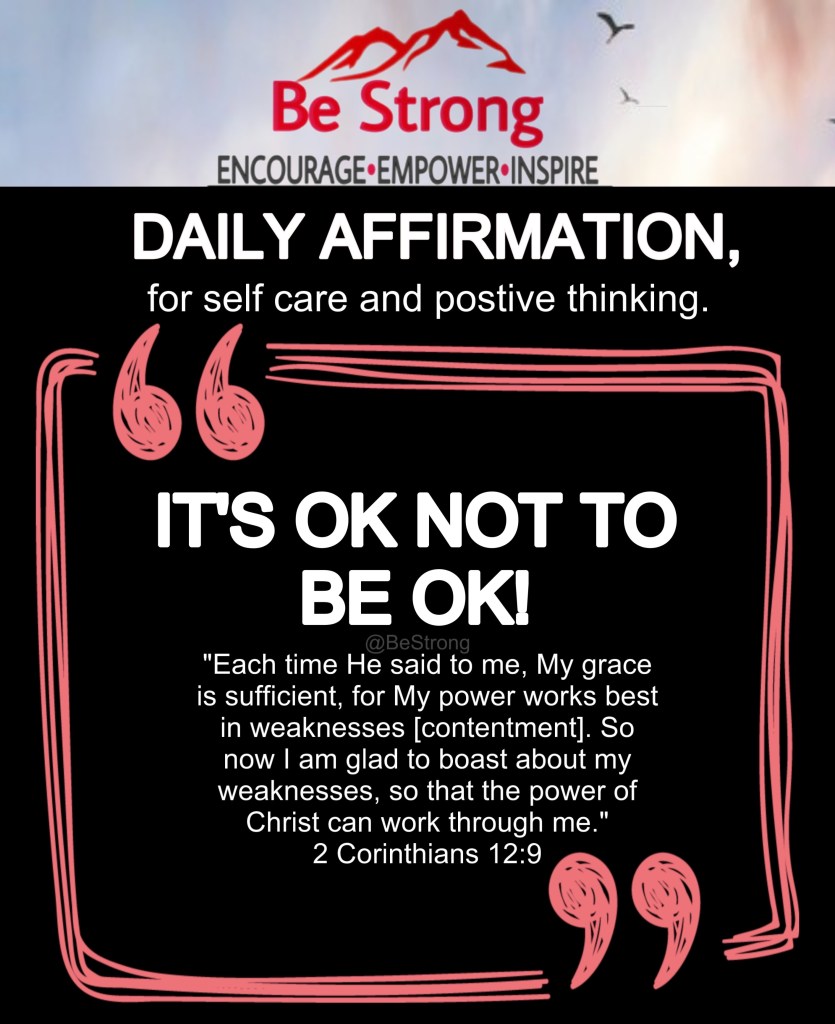 Sometimes God uses our difficulties to bring us to the point of humility, submission, and contentment. However, this is where and when God deposits His perfecting power! Hence my point, it’s ok not to be ok because God’s power is at work in every uncomfortable and difficult season.