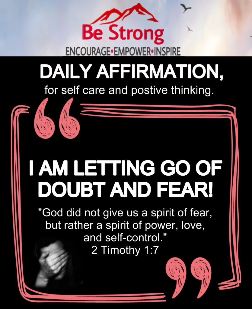 Letting go of fear and doubt can be a difficult but rewarding process. The Bible is filled with people that struggled with fear and doubt, but by God’s grace, design, and divine intervention they each learned how to overcome these two critically damaging and debilitating emotions. One verse that always comes to mind when I struggle with these two emotions is found in 2 Timothy 1:7 and Paul wrote, “God did not give us a spirit of fear, but rather a spirit of power, love, and self-control.”