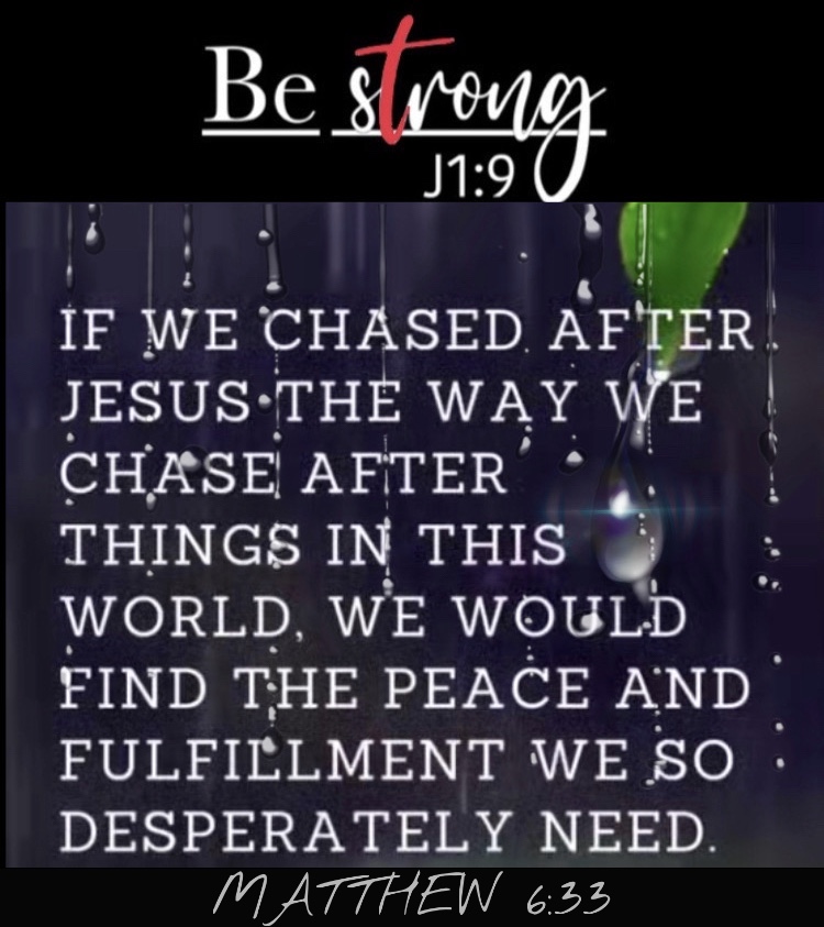 So, if this message is knocking on your door today, know that you’re not alone. We have all dibbled and dabbled in pursuing world possessions. However, it’s not too late to shift your focus and attention. Think about this for a moment; if we chase after Jesus the way we chase after the things of this world, we would find the peace and fulfillment we so desperately need in our lives!