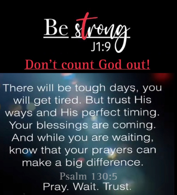 My brothers and sisters, there will be tough days, we will get tired. But we must trust and hope in His ways and His perfect timing. Our blessings are coming. And while we are waiting remebwr that our prayers can make a big difference. Waiting is a place of trust and hope, not anquish and defeat.