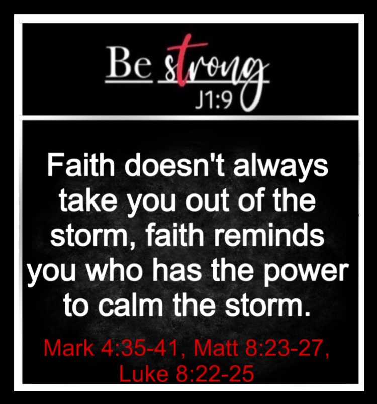 I pray this message helps someone today who is presently in the middle of storm and if that’s you remember that faith doesn’t always take you out of the storm, faith reminds you who has the power to calm the storm.