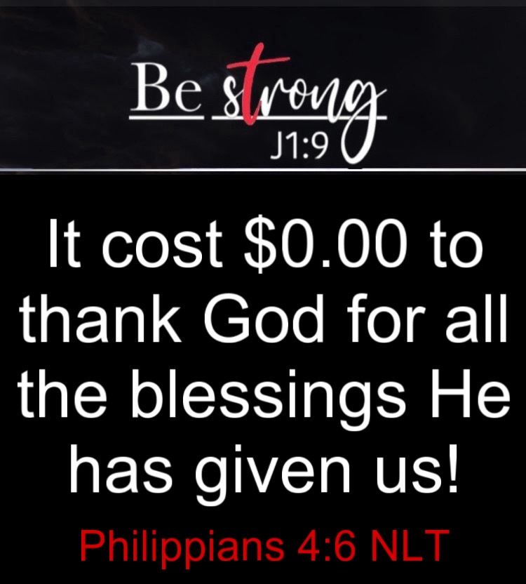It cost us $0.00 to thank God for all the blessing He is given us.