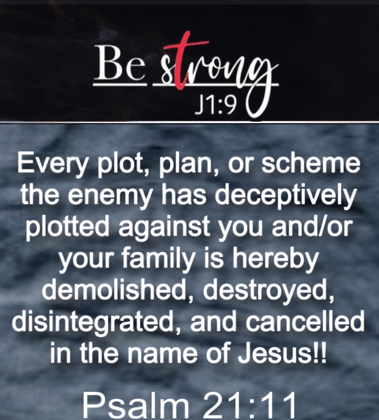 I could keep on going but that’s enough to chew on for this word of encouragement. The good news is that, “Although they plot against you, their evil schemes will never succeed” (Psalm 21:11). Therefore my prayer and declaration is that every plot, plan or scheme the enemy has deceptively plotted against you and/or your family is hereby demolished, destroyed, disintegrated, and cancelled in the name of Jesus!! We can be truly thankful that what, “the enemy meant for bad, God meant it for our good” (Gen 50:20).