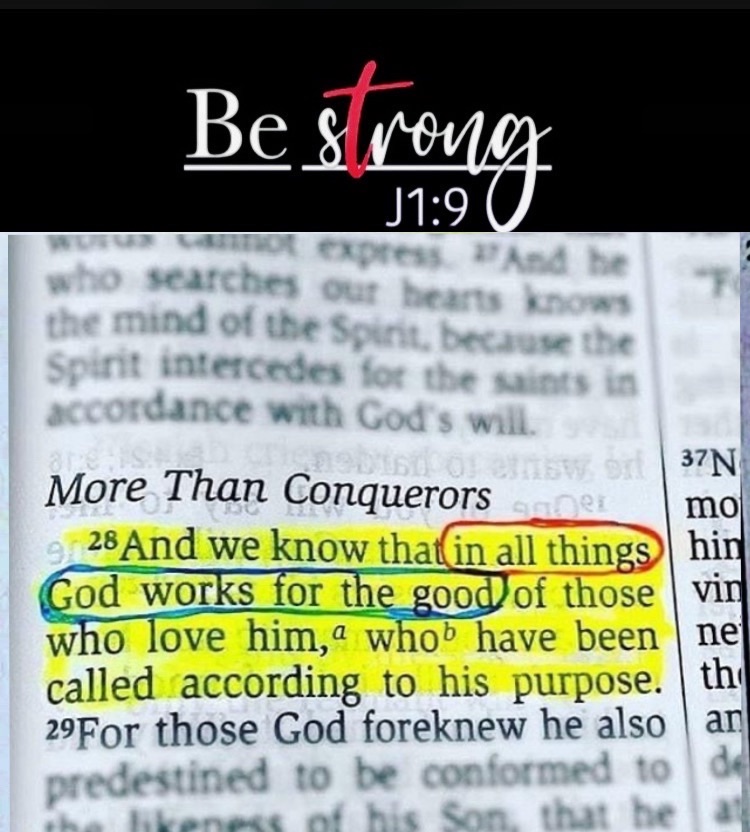 Here’s the deal, the promise that God works ALL things together for good does not mean that ALL things, taken by themselves, are good. We live in a fallen world and some things and events are decidedly bad. But God is able to work them together for good. He sees the big picture; He wrote the Master plan. Psalm 139:16 declares, “Your eyes saw my unformed body; ALL the days ordained for me were written in your book before one of them came to be.”