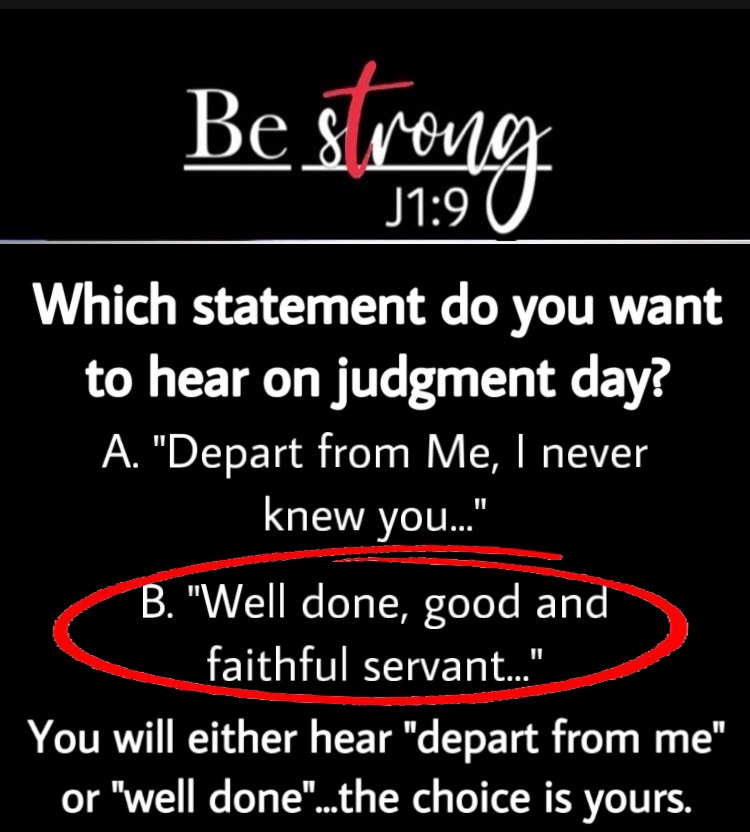 You better believe the ‘time’ for Jesus’ return is drawing is nearer as each day passes. That being said, which statement are you prepared to hear on judgment day?