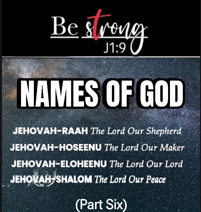 Well, my brothers and sisters, this concludes our six part series, but I wanted you to remember that every name of God offers us something powerful, insightful, and wonderful: the guidance of a Shepherd, the purpose from our Maker, the sovereignty of our Lord, and the peace of our Savior. These truths are meant to be lived out daily, providing us with strength, comfort, peace, wisdom, hope,and assurance.