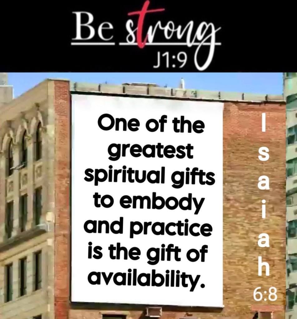 One of the greatest spiritual gifts to embody and practice is the gift of availability. It is the willingness to set aside personal agendas, open our hearts, and make space for God’s work in and through us. By being present and responsive to His call, we become instruments of His grace and love in the lives of others. Availability is not about perfection or having all the answers—it’s about a posture of readiness, faith, and obedience to say, “Here I am, Lord, use me” (Isaiah 6:8). It is a profound way to reflect Christ’s example of selfless service and unwavering commitment to God’s will.