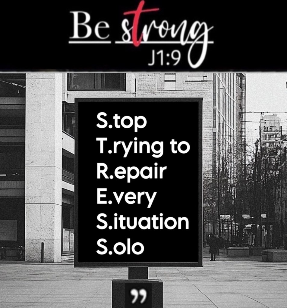 My brothers and sisters, I encourage you to stop Trying to Repair Every Situation Solo (S.T.R.E.S.S.) and remember Horizontal circumstances pushes us to vertical praise and in the end God always win!!
