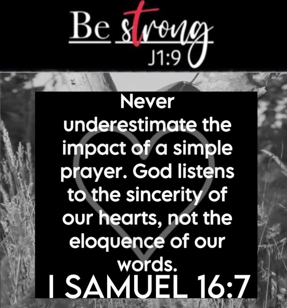 Here’s the deal, prayer doesn’t have to be perfect or poetic to reach God’s ears. The Bible reminds us that God looks at the heart (1 Samuel 16:7) and values our genuine connection with Him over flowery language. A single, heartfelt prayer can bring peace, hope, comfort, and strength. Even when we feel weak, uncomfortable, or unsure, God understands the unspoken cries of our hearts.