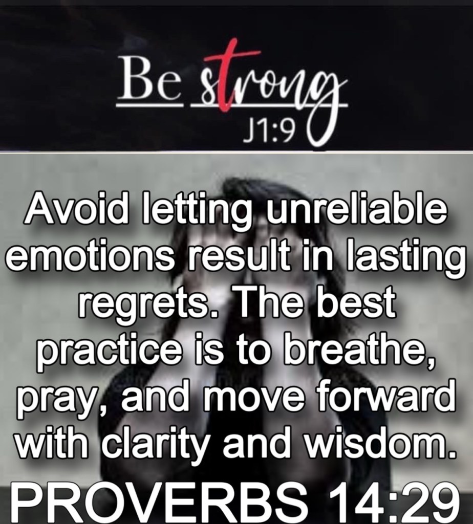 My brothers and sisters, I encourage you to avoid letting fleeting and unreliable emotions result in lasting regrets. The best practice is to breathe, pause, pray, and move forward with clarity and wisdom.