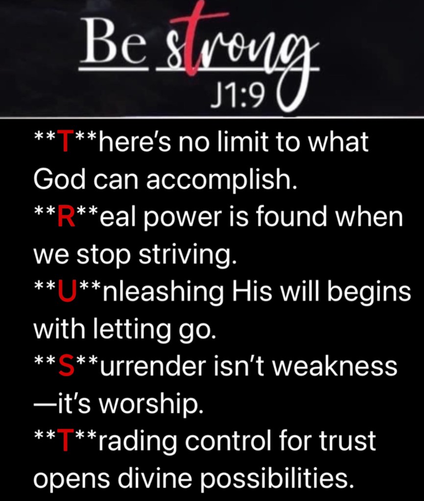God can do a lot more with your surrender than He ever could with your control. When we hold on tightly, trying to manage every detail, we often end up exhausted, anxious, and frustrated. But when we let go and put it in God’s hands, that’s when miracles happen. Surrender is not weakness—it’s wisdom. It’s saying, “God, I trust Your plan more than I trust my own.”