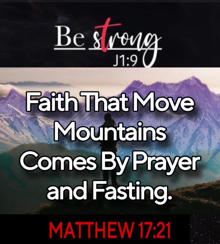 Faith that moves mountains comes by prayer and fasting. Jesus affirmed this in Matthew 17:21: “However, this kind does not go out except by prayer and fasting.”
