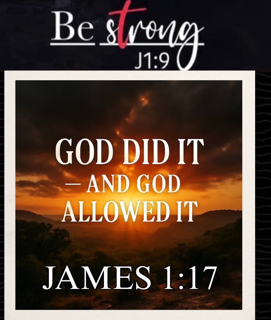 If anything good has ever happened in my life—God did it. Every open door, every healing, every unexpected blessing—it was His hand, not mine. His mercy, not my merit and not the universe. It’s all aboHis provision, not my power. James 1:17 says it clearly: “Every good and perfect gift is from above, coming down from the Father of lights, who does not change like shifting shadows.”