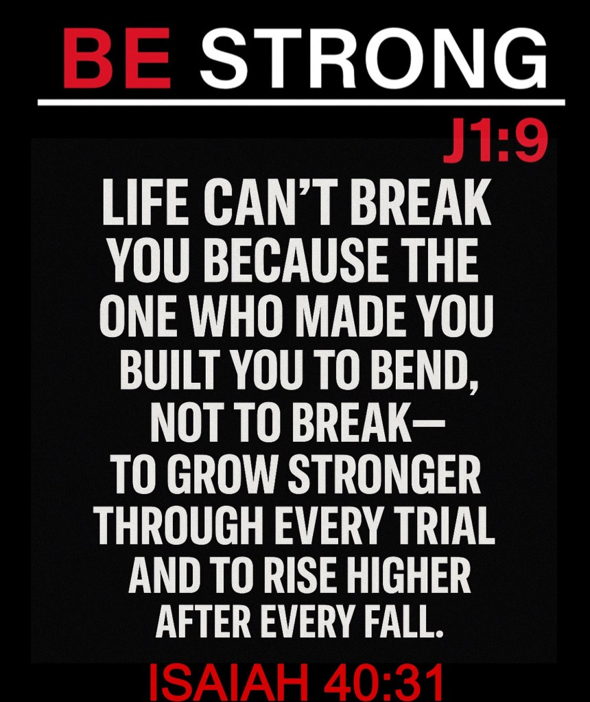 Beloved, life can’t break you because the One who made you built you to bend. You were never created to crumble under pressure—you were designed to grow stronger through every trial and to rise higher after every fall. The storms of life don’t define you; they refine you. What breaks others only builds those whose hope is anchored in God.