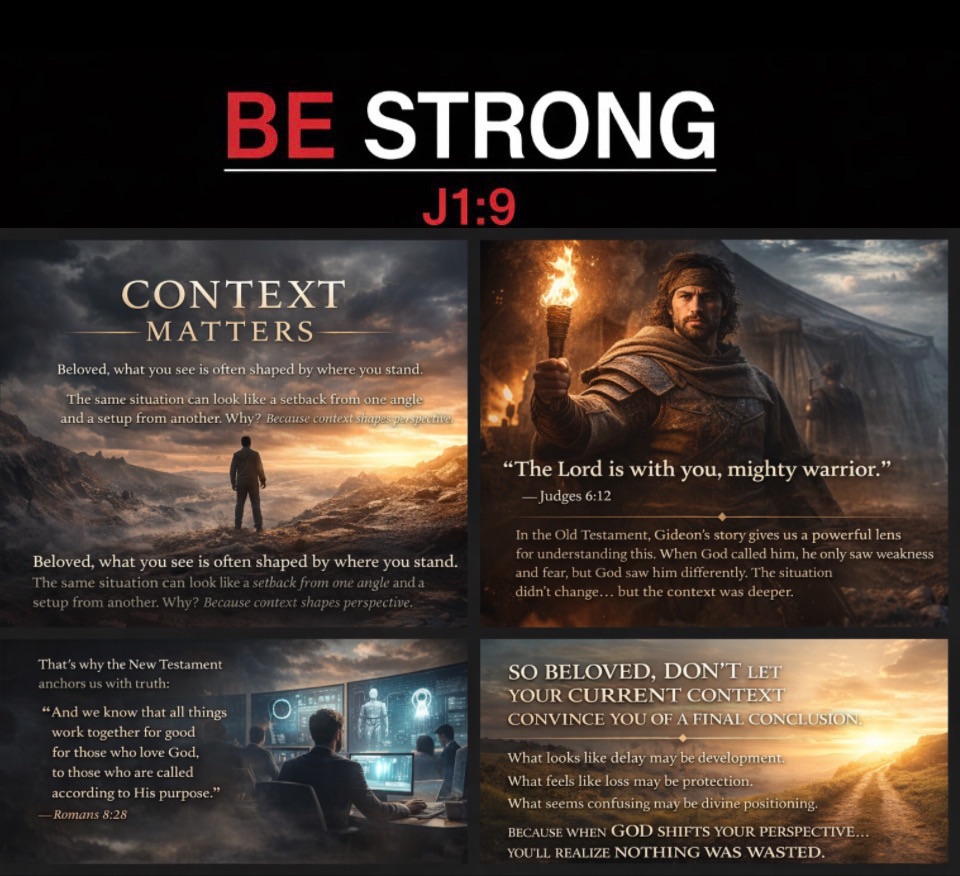 So Beloved, don’t let your current context convince you of a final conclusion. What looks like delay may be development. What feels like loss may be protection. What seems confusing may be divine positioning. Because when God shifts your perspective, you’ll realize that nothing was wasted—everything was working together in ways you simply couldn’t see at the time.